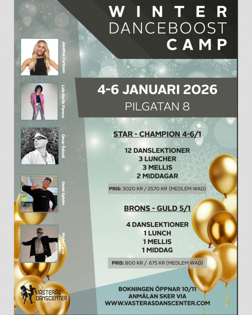 Vi öppnar säsongen med Winter danceboost Camp. Ni bokar enkelt er plats längst ner här på sidan.